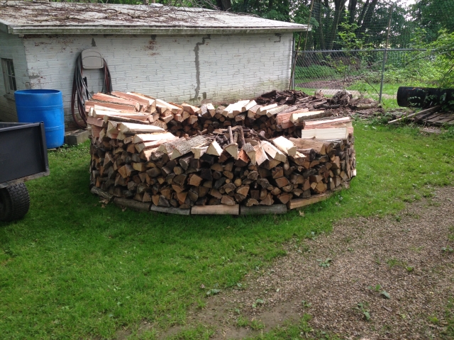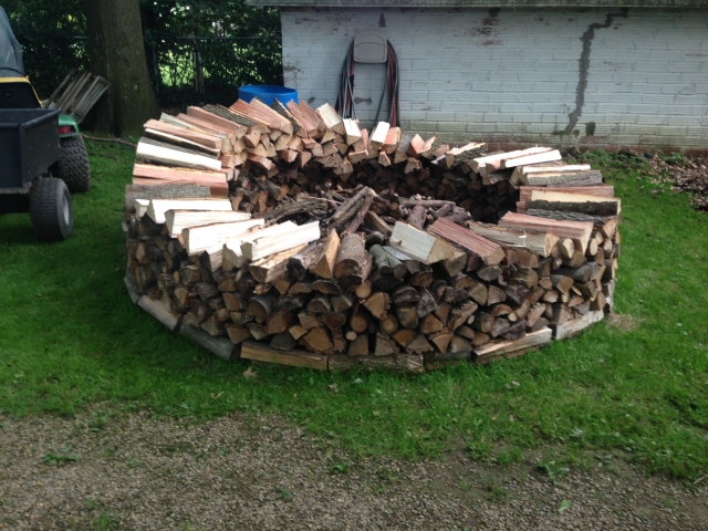 We have tried various ways of stacking our wood over tha past few years. None of them have worked very well. All of the piles have collapsed to some degree. In early 2014 I saw a video on youtube about a holz hausen.