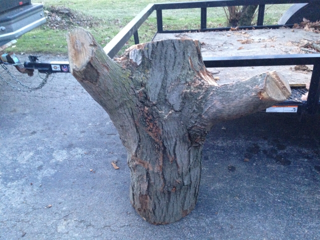 Stumpy is the newest member of Team Woodchuck. He had roots at North Cadillac drive in Boardman and joined us in October 2014 after a tragic act of violence separated him from his family tree. He shoulders the load when we need to cut branches to length. Stumpy is willing to work in all types of inclement weather, and unlike Bob, he doesn't complain when he gets nicked with the chainsaw.